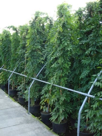Hoge klimplant met krachtige groeiwijze. Bladverliezend. Hoogte 7-9 m. Blad samengesteld, heldergroen. Bloemen licht lilablauw in lange hangende trossen. Geurend. Half mei, voor de bladontwikkeling. Nabloei in september.